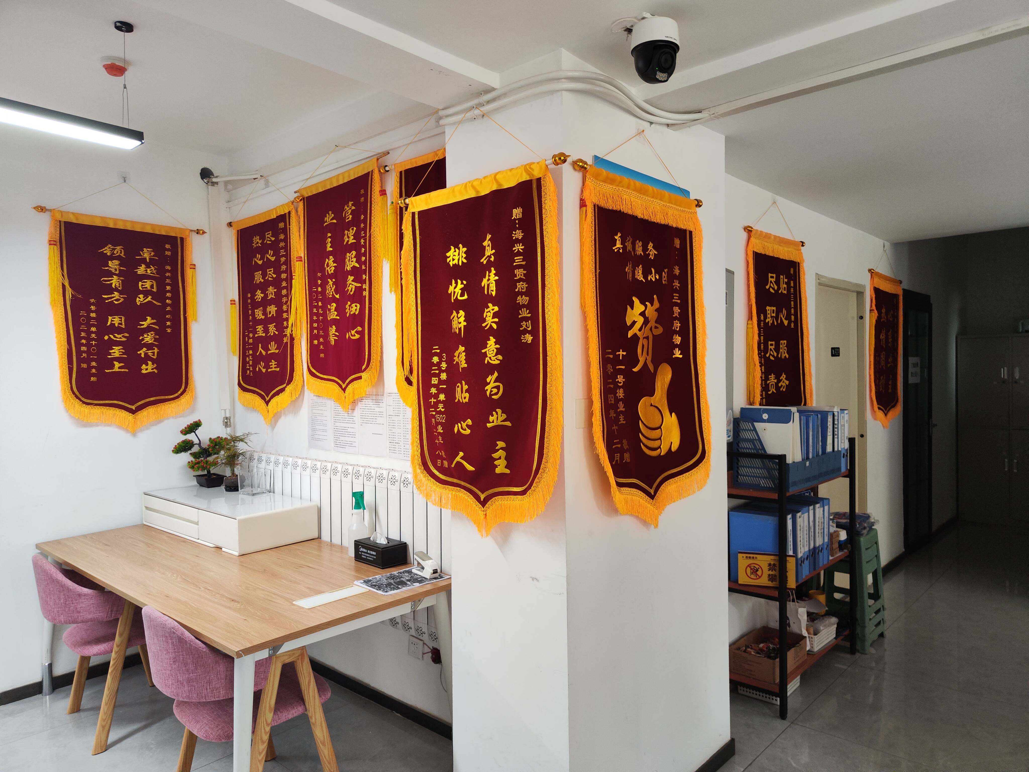 馮南京所在的物業(yè)公司獲得小區(qū)居民贈(zèng)送的各種錦旗