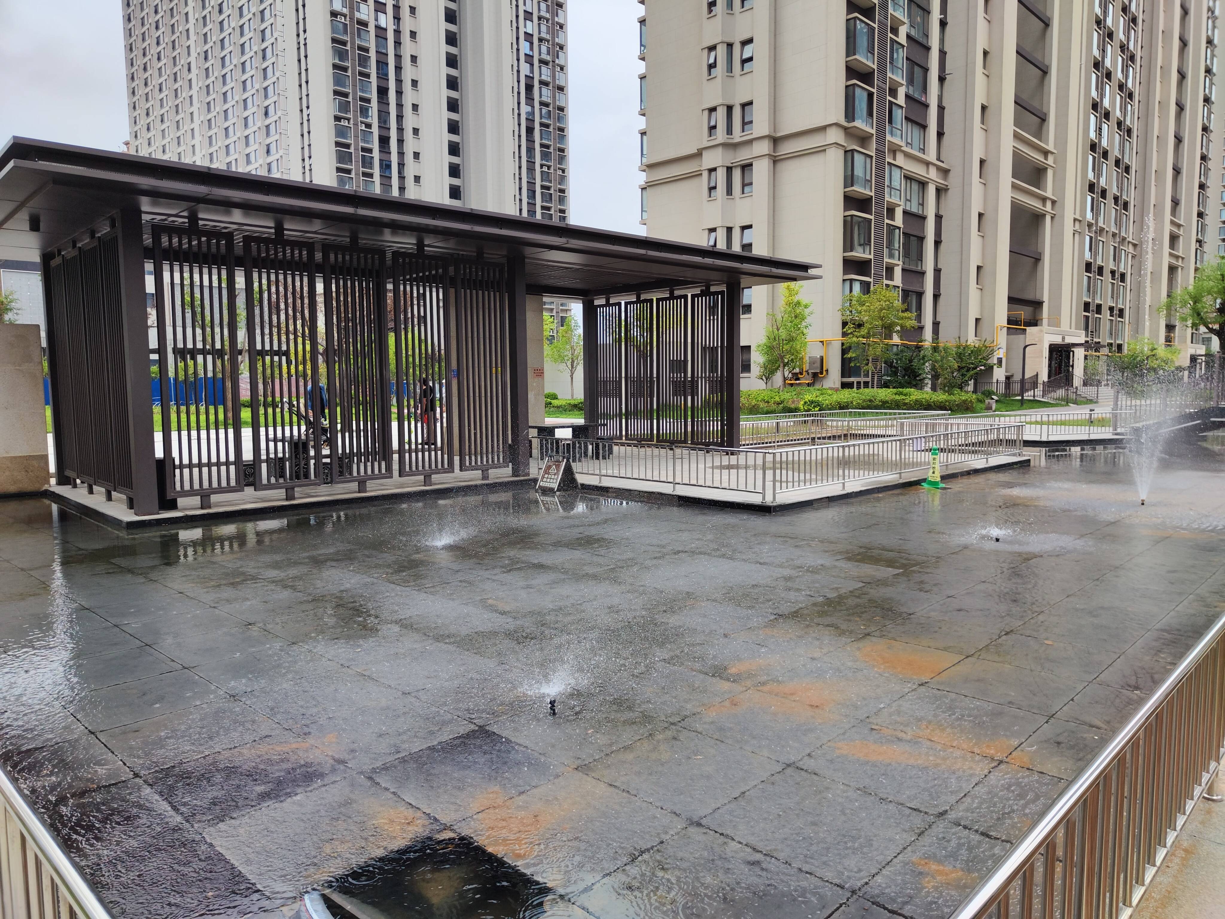 馮南京和工人為小區(qū)改造的噴水池景觀