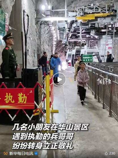 《中國青年報》,新華每日電訊、人民武警視頻號等媒體平臺宣傳報道華山景區“萌娃們看到正在執勤的兵哥哥紛紛向前敬禮致敬”。