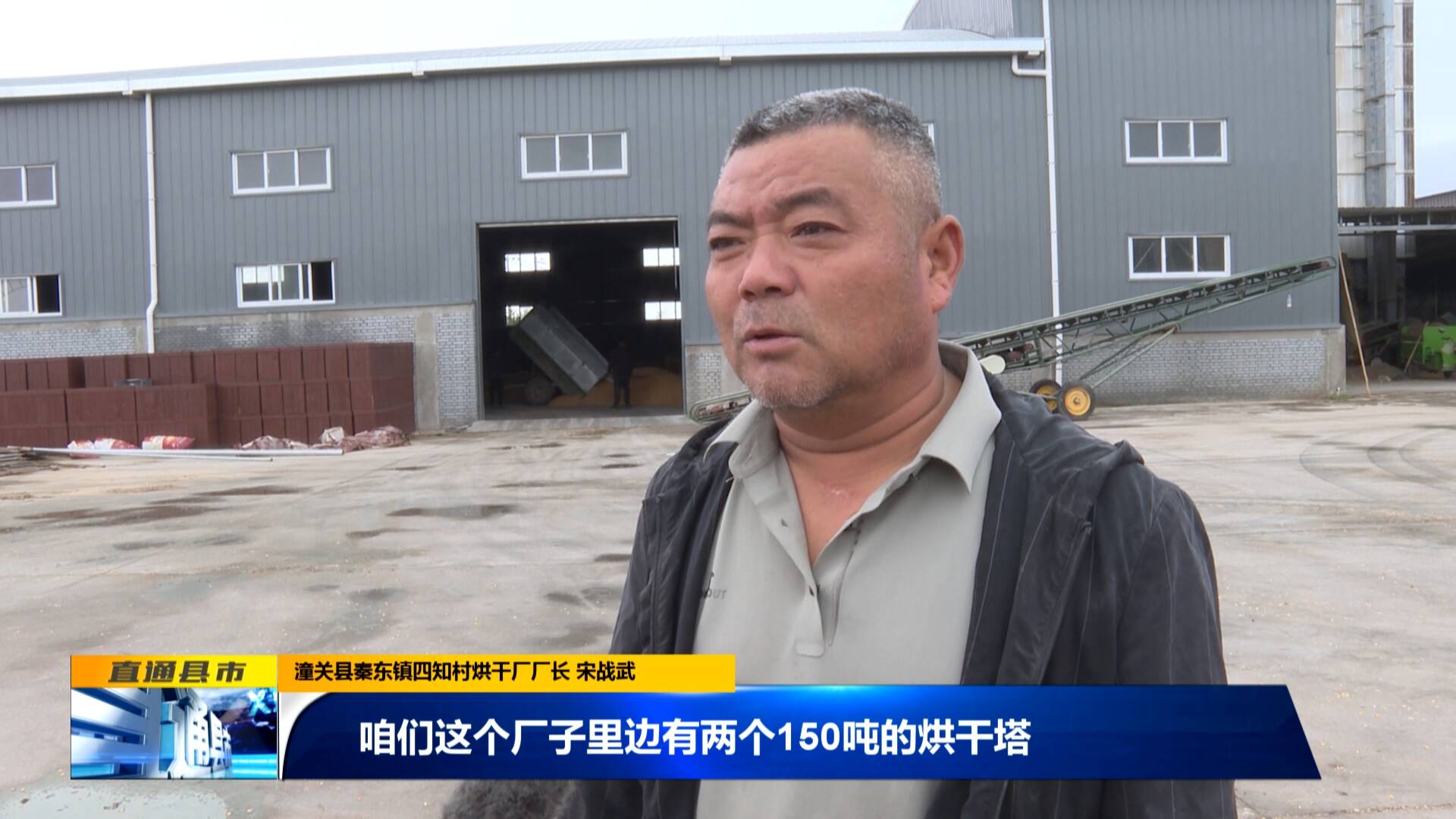 潼關縣秦東鎮(zhèn)四知村烘干廠廠長 宋戰(zhàn)武:“咱們這個廠子里邊有兩個150噸的烘干塔,大概現(xiàn)在能收能烘干一百多萬斤的玉米,一天就是能烘?zhèn)€40萬(斤)左右。”