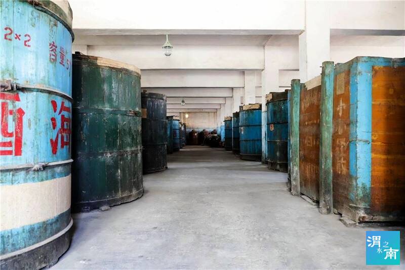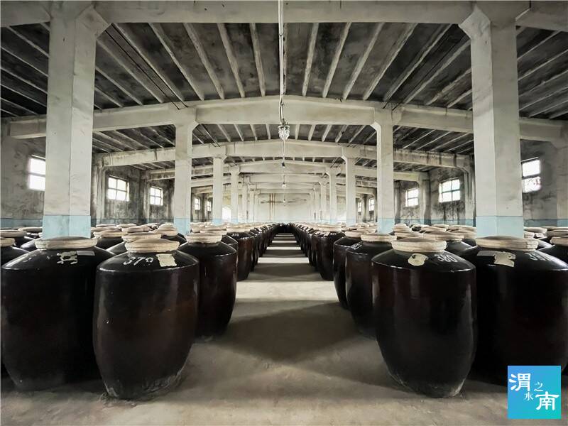 陜西白水杜康酒廠的整齊排列的陶壇酒缸