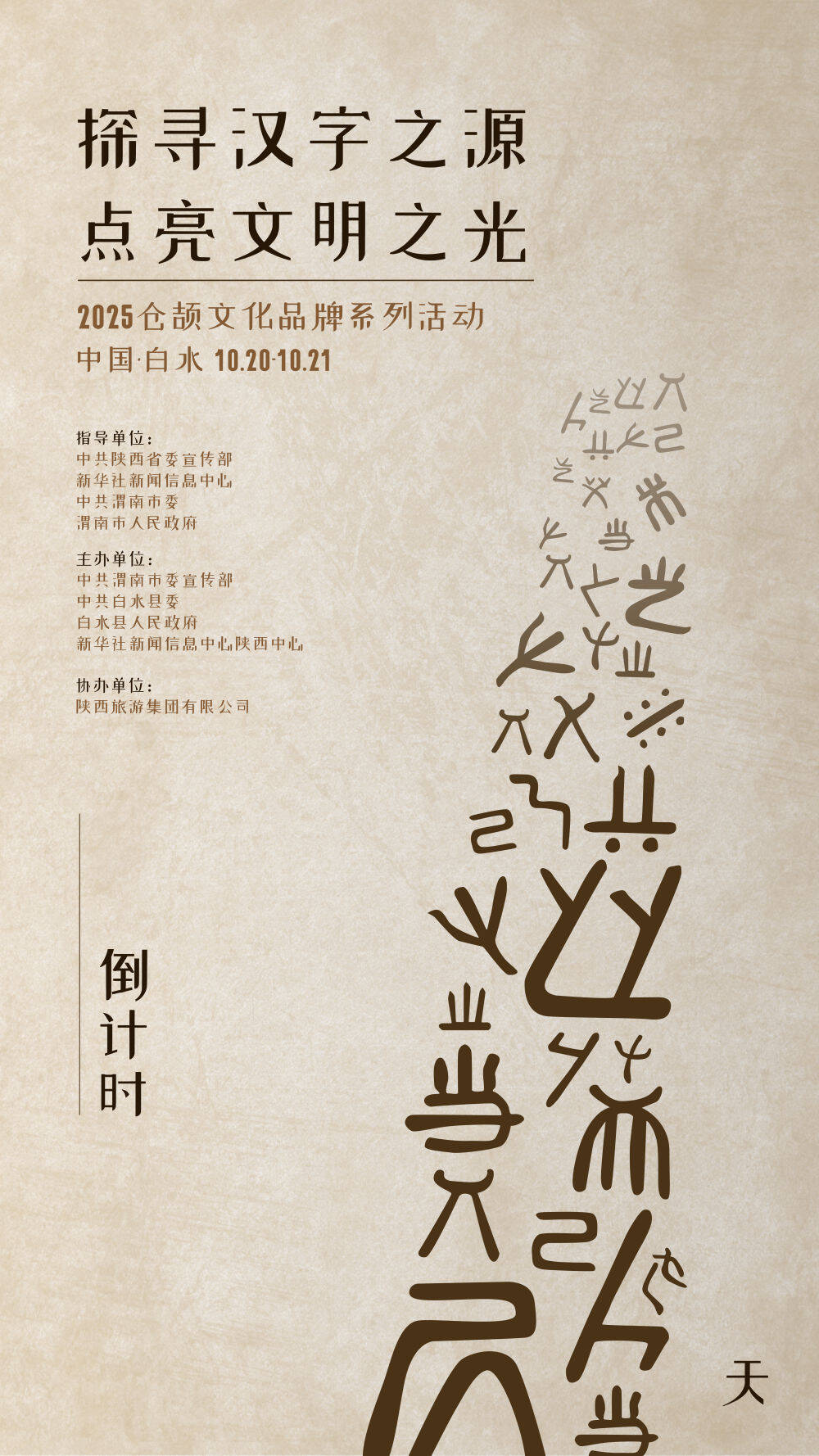 由中共陜西省委宣傳部、新華社新聞信息中心、中共渭南市委、渭南市人民政府指導,中共渭南市委宣傳部、中共白水縣委、白水縣人民政府、新華社新聞信息中心陜西中心主辦,陜西旅游集團有限公司協辦的2025倉頡文化品牌系列活動將于10月20日至21日在渭南市白水縣舉辦。本次活動以“探尋漢字之源 點亮文明之光”為主題,同期將舉辦城市觀察團走讀白水、2025倉頡文化品牌推介、白水非遺文化展示、倉頡文化交流活動等,對外推介白水文化、文旅品牌,進一步拓展白水文旅版圖,提升白水城市形象,凝聚全縣發展動能。