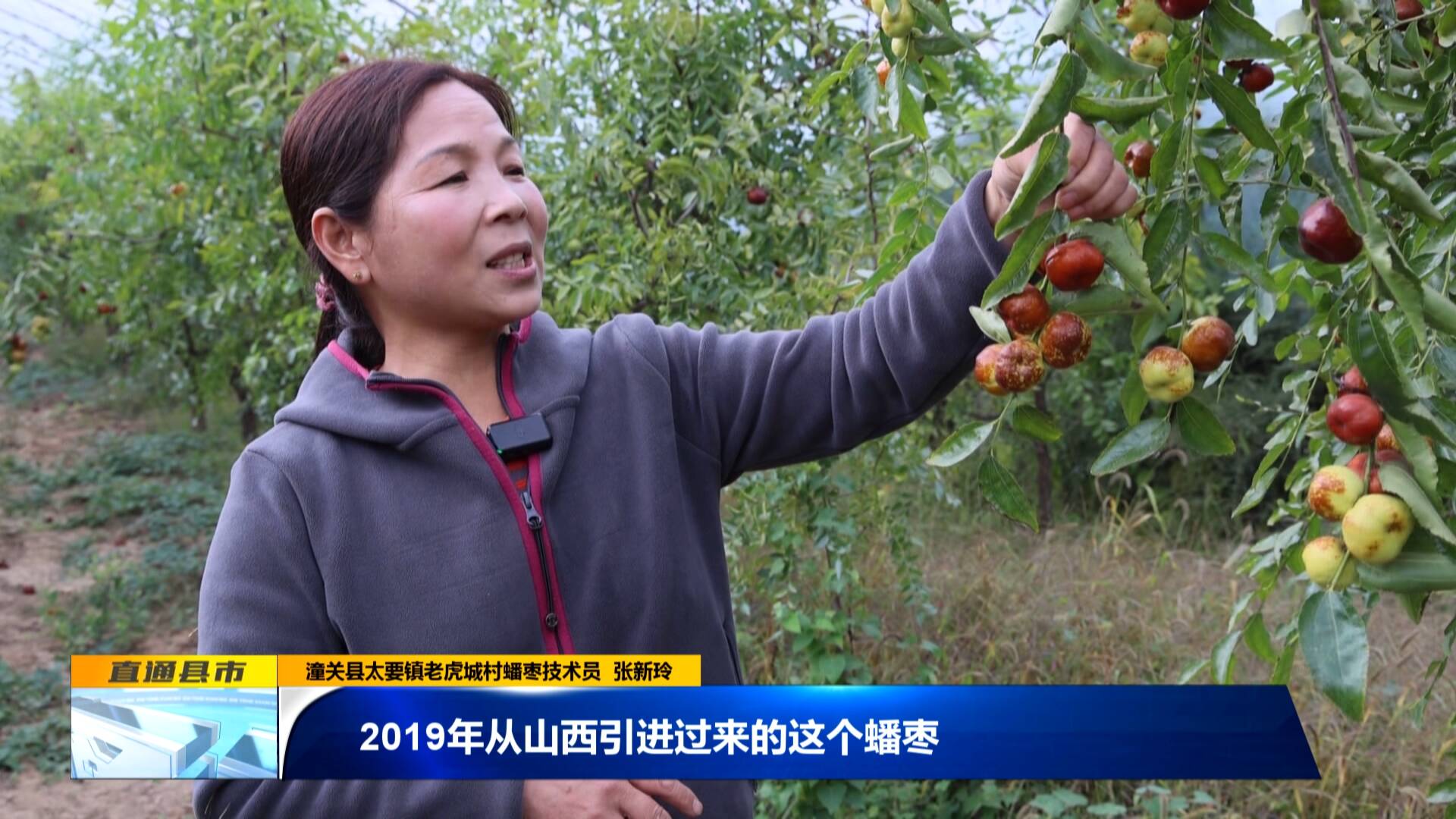 潼關縣太要鎮老虎城村蟠棗技術員 張新玲:“2019年從山西引進過來的這個蟠棗,今年掛果第五年,品質特別好,適應我們丘陵地帶的溫度。”