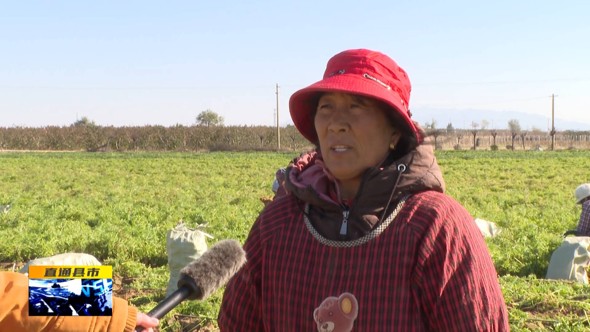 大荔縣荔盛蘿卜專業合作社務工群眾 胡改煥:“我們在這邊找點活,這邊一天干八九個小時,一天管兩頓飯,我們感覺到還可以,一天就是掙一百多塊錢,家就在附近(也方便)。”