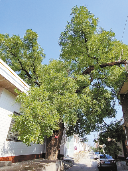 76歲的王尚民還記得,兒時他家門前是個狹窄的土巷道,僅能過一輛牛拉車。記憶中,他家翻修過兩次,原來是土墻,后來翻修成了磚墻,再翻修時則成了瓷磚墻,并蓋了樓板房。為了保護這株老槐樹,在翻修時,特意將院墻內(nèi)縮,比左右鄰居短約0.7米。