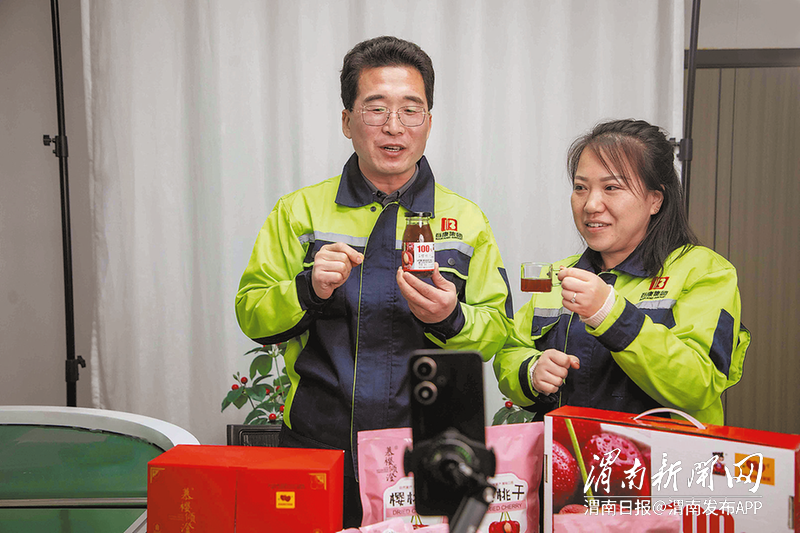 “家人們,我們澄城縣地處渭北高原東部,土壤肥沃、溫差大,是全國(guó)公認(rèn)的櫻桃優(yōu)質(zhì)產(chǎn)區(qū)。這里產(chǎn)的櫻桃制成的果脯酸甜可口,榨出的果汁清爽甘甜,釀成的果酒醇香迷人,直播間下單現(xiàn)貨直發(fā)……”