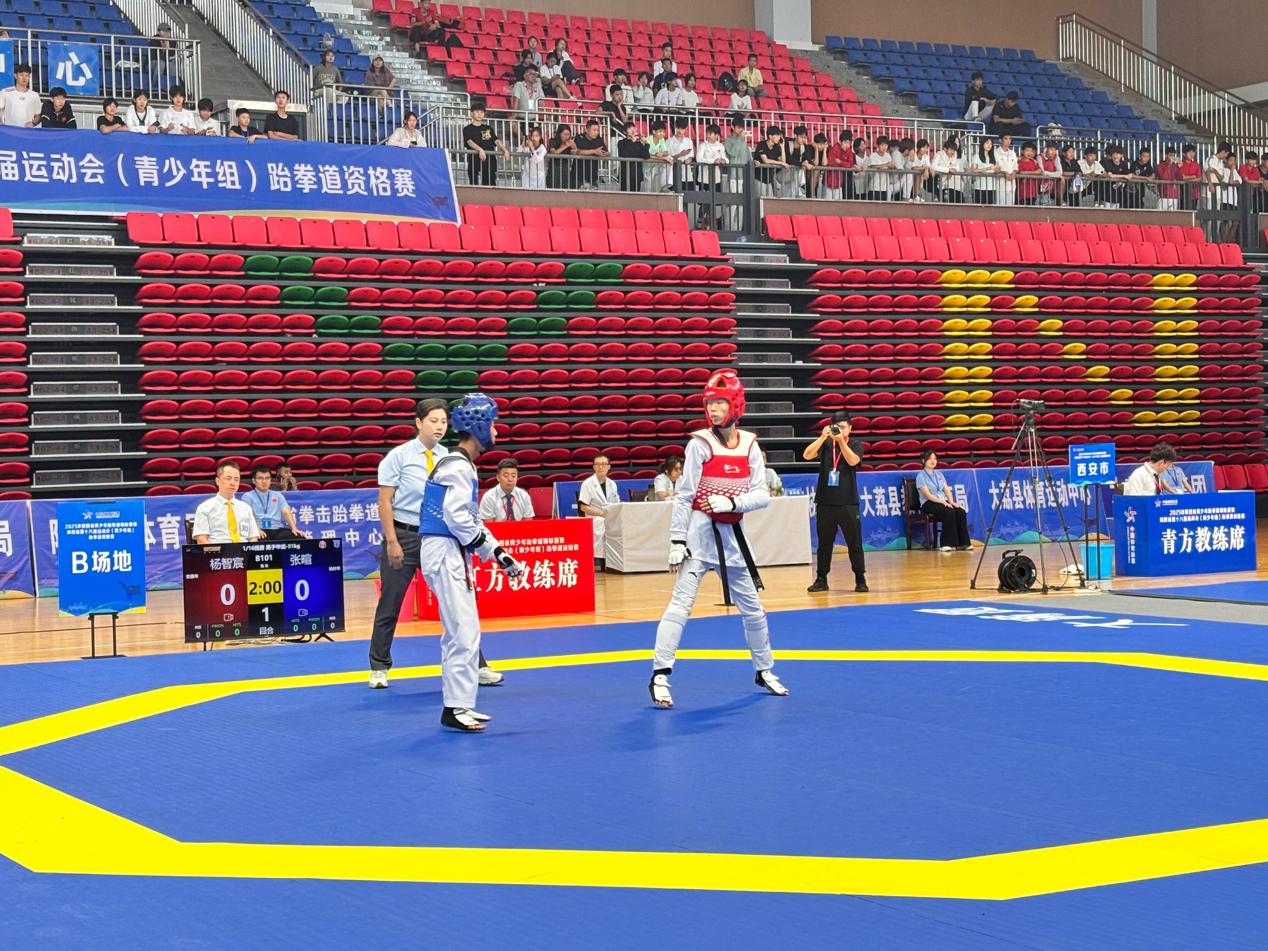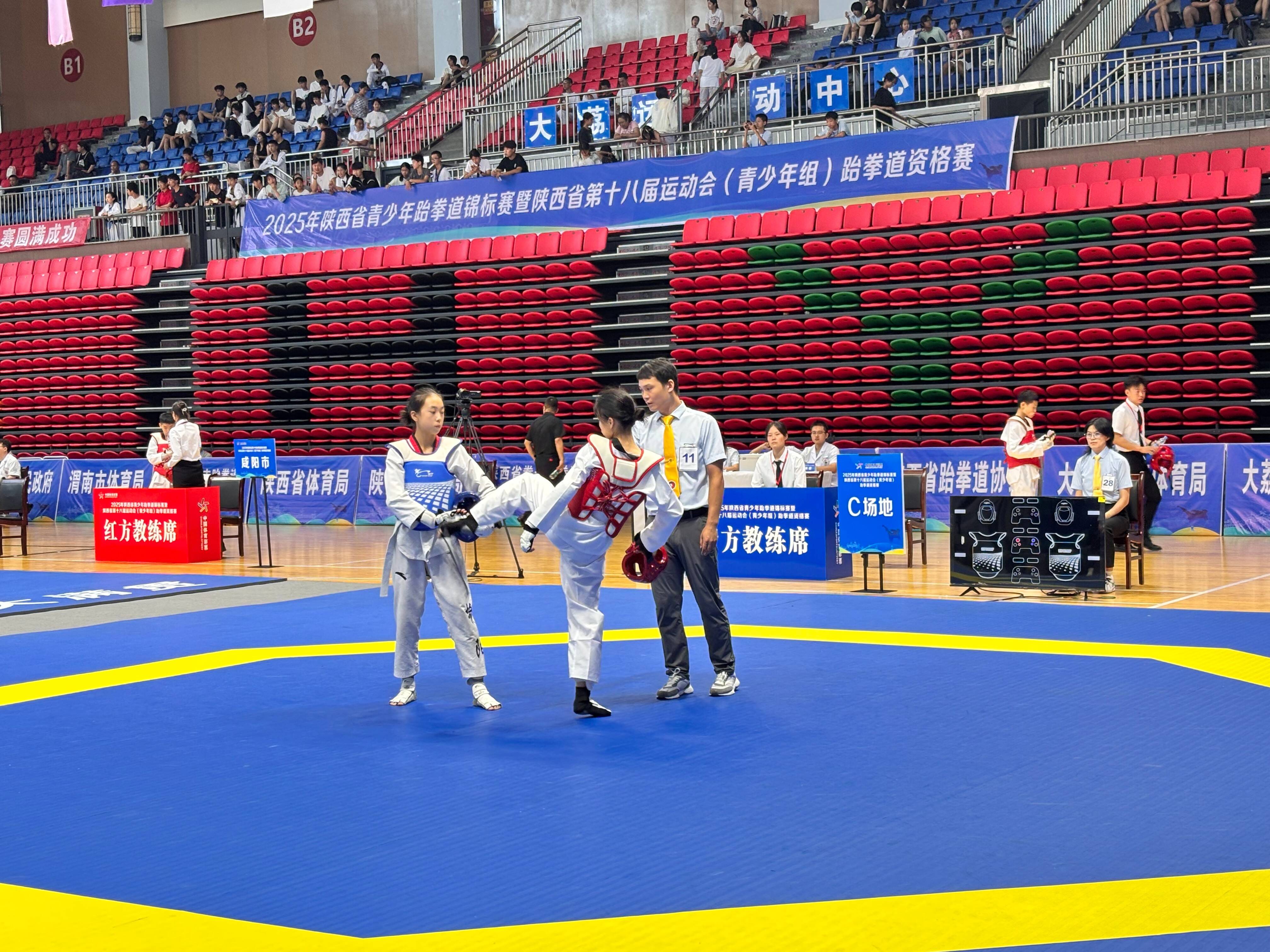?(通訊員:周坤茜)7月23日,2025年陜西省青少年跆拳道錦標賽暨陜西省第十八屆運動會(青少年組)跆拳道資格賽在大荔縣開賽。來自全省11支代表隊的417名青少年選手齊聚賽場,在為期六天的賽程中展開激烈角逐。