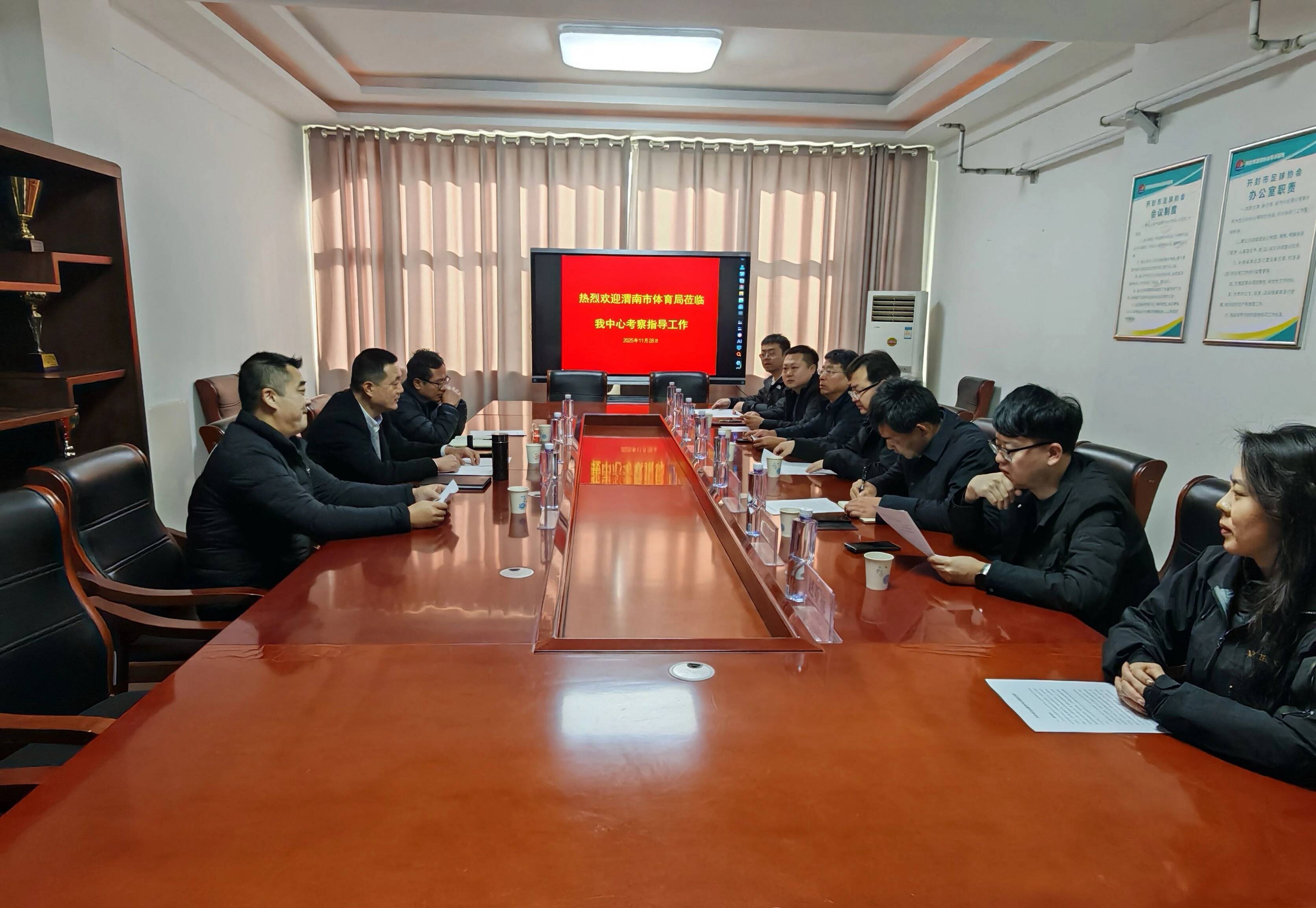 11月28日,渭南市體育局黨組成員、副局長郭軍一行7人赴開封市全民健身中心,圍繞場館運營管理、智慧化服務等工作開展考察交流,開封市教體局黨組成員、副局長張昱及開封市全民健身中心負責人陪同考察。