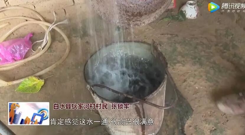 白水縣狄家河村村民 張鎖牢:肯定感覺這水一通,很高興、很滿意,吃水問題得到了解決,群眾不到外地拉水去了。