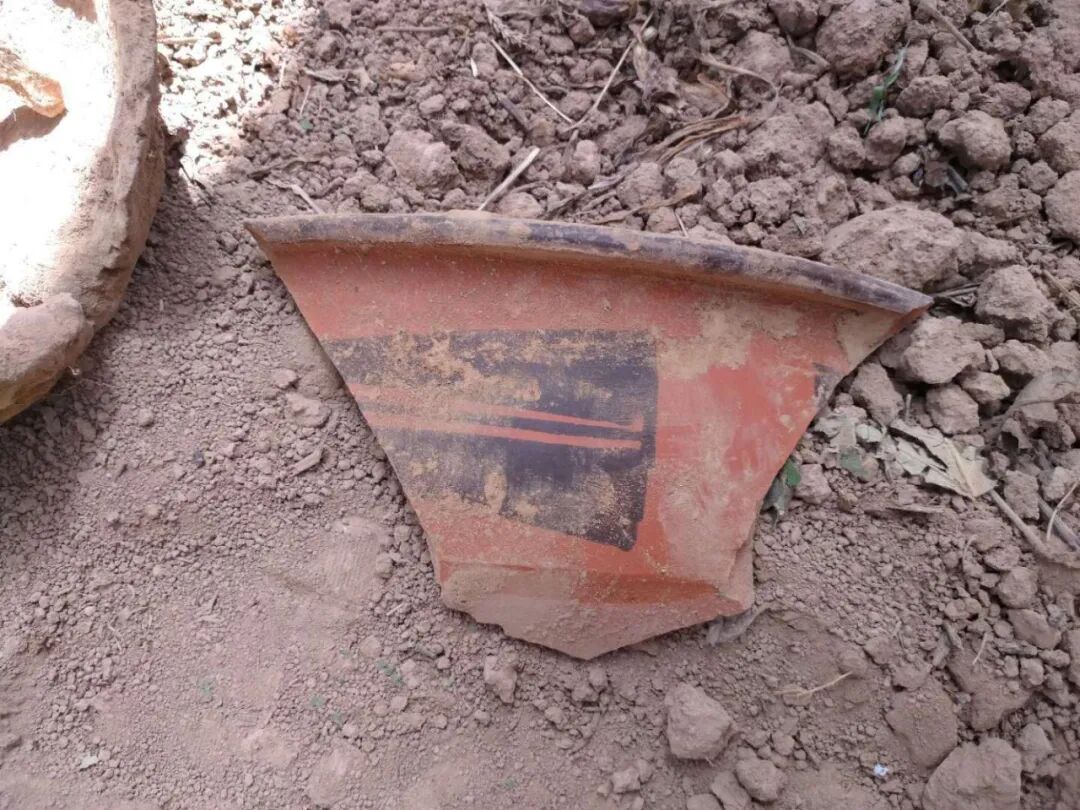 5月中旬開挖拾梯,發現一窯洞狀古跡,遂上報白水縣文管所、杜康文化站、白水縣文旅局等相關單位,縣委常委、常務副縣長楊勇,縣文旅局井智軍局長,杜康鎮李剛鎮長等相關領導高度重視,親近施工現場,經初步勘察,發現了古瓦片,三足鼎腳,石灰層線及百余米地道錯綜分布。
