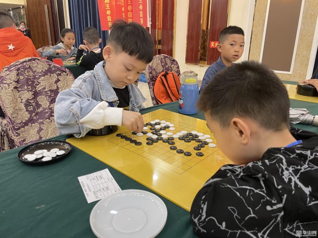 比賽現(xiàn)場,小選手們兩兩相對而坐,摒息捻子、精心布局,落子聲此起彼伏,舉手投足間透露著自信和從容,在簡單的方寸棋盤上,黑白的錯落間,上演著一場場令人緊張的精彩對弈。