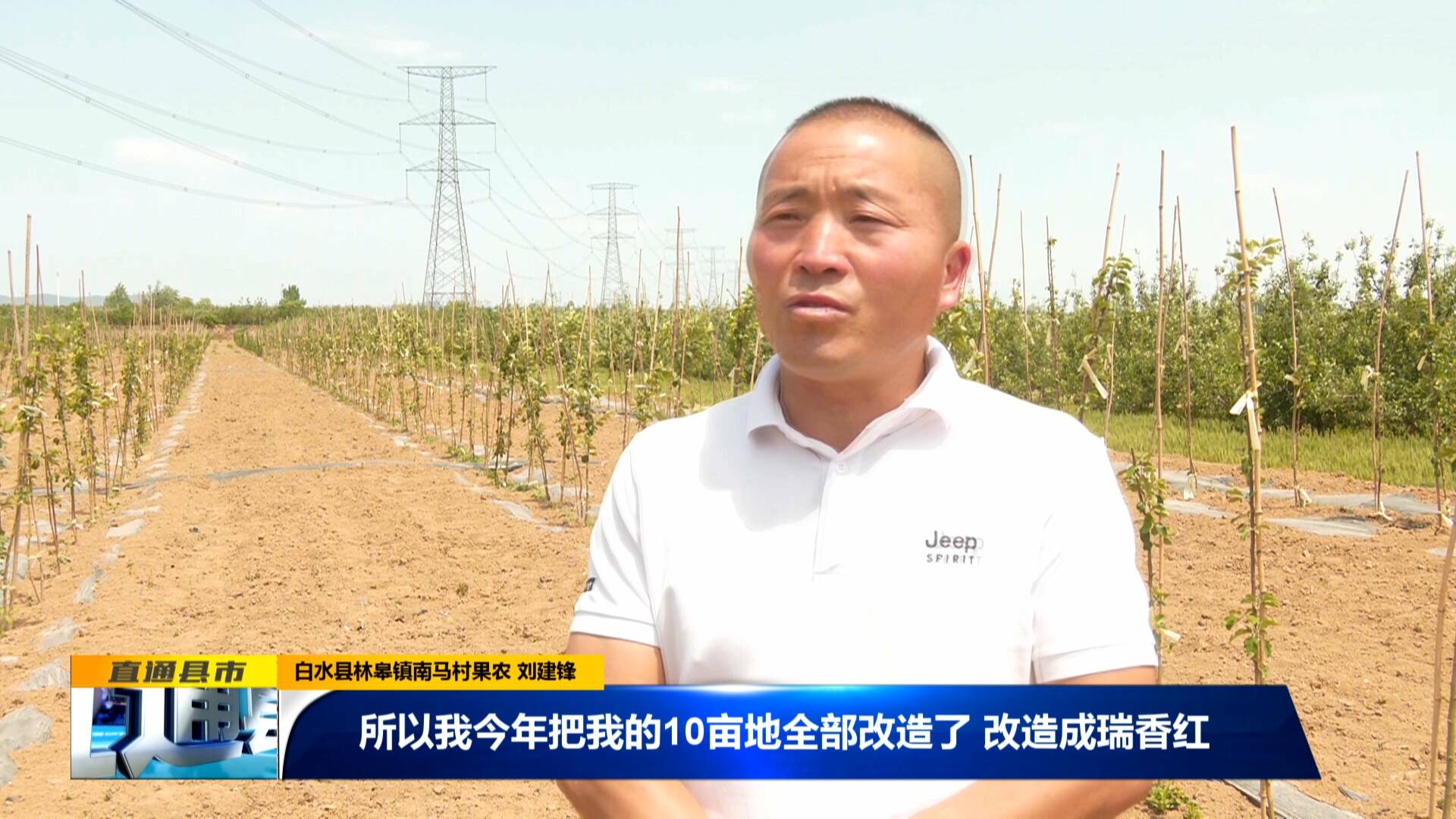 白水縣林皋鎮南馬村果農 劉建鋒:“所以我今年把我的10畝地全部改造了,改造成瑞香紅,你看這個打藥都是機械化,套蘋果也好套一點。”