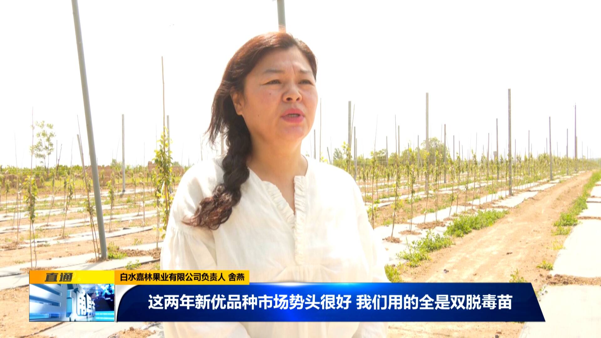 白水嘉林果業有限公司負責人 舍燕:“這兩年新優品種市場勢頭很好,我們用的全是雙脫毒苗,現在勢頭很好,成活率很高。”