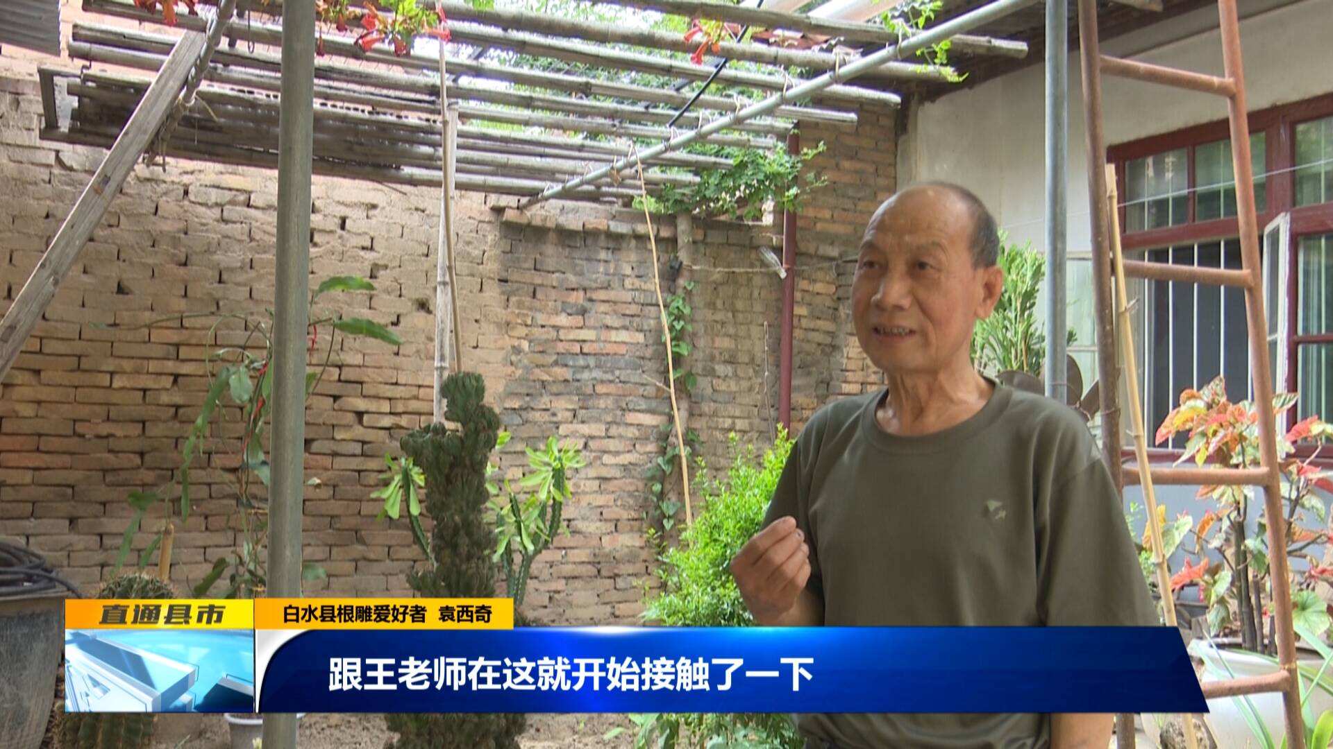 市級非遺項目白水根雕代表性傳承人 王安康:“(我希望)把我的根雕繼續傳承下去,多招些學員,使他們能夠更深刻地進行學習,把根雕藝術繼續傳承下去。”