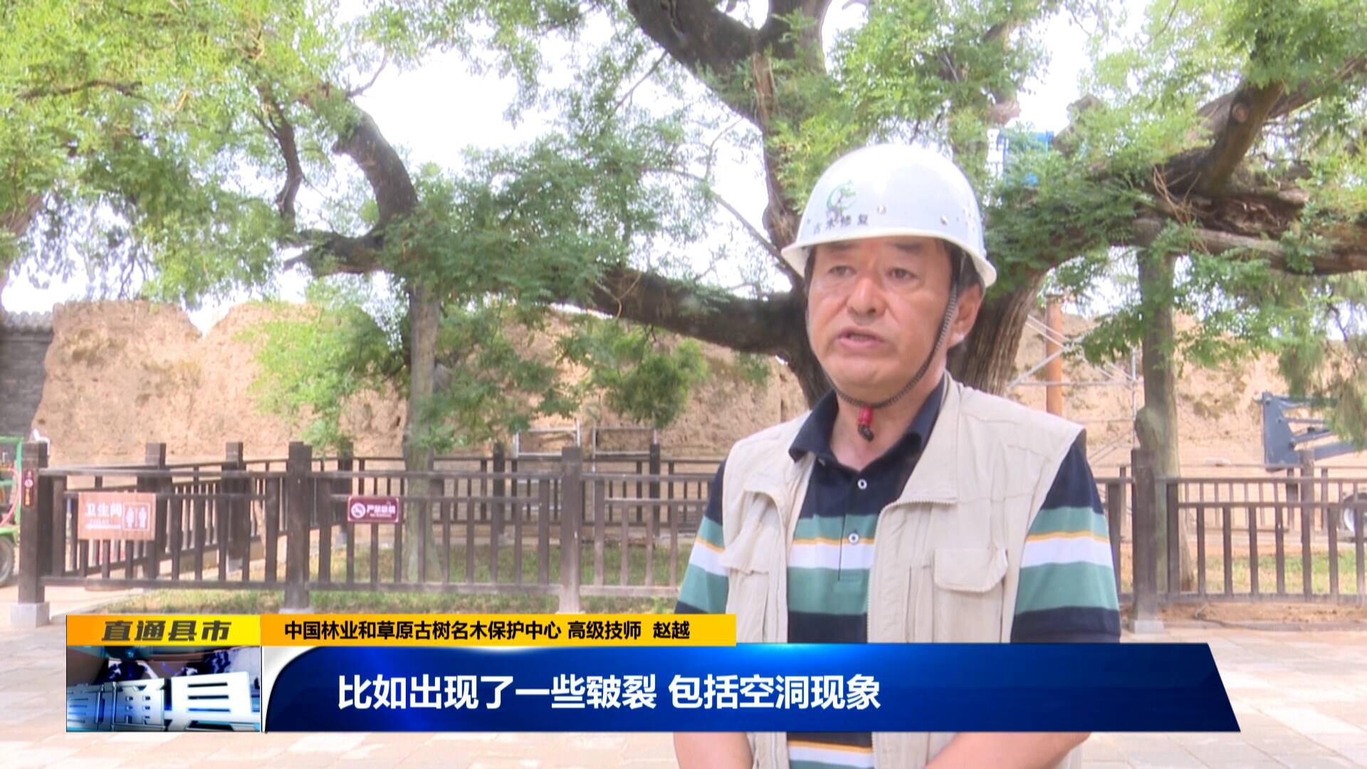中國林業和草原古樹名木保護中心 高級技師 趙越:“由于樹齡比較長,比如出現了一些皸裂,包括空洞現象,所以現在我們先進行支撐,保證樹體穩定,然后對整個樹進行一次全面的一些養護,我們現在所做的工作就是去保護它。”