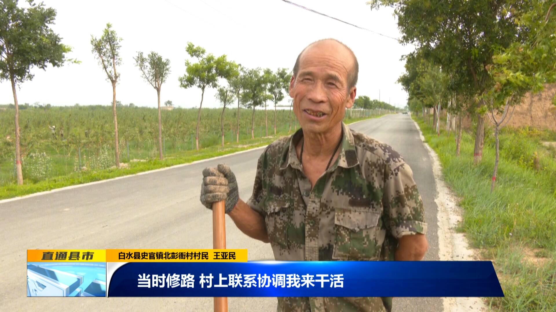 白水縣史官鎮北彭衙村村民 王亞民:“當時修路,村上聯系協調我來干活。工期期間我干了15天,一共掙了3000塊錢,增加了家庭收入,減輕了經濟負擔。”