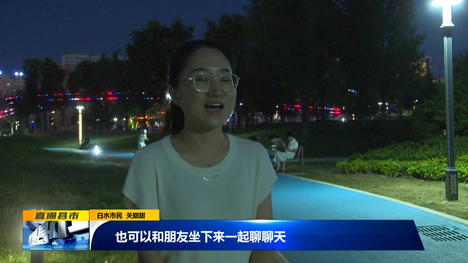 白水市民 關甜甜:“這個公園對我們來說特別便利,晚飯過后可以領著小朋友,領著家里的老人來公園散散步、消消食,也可以和朋友坐下來一起聊聊天,我覺得挺好的。”