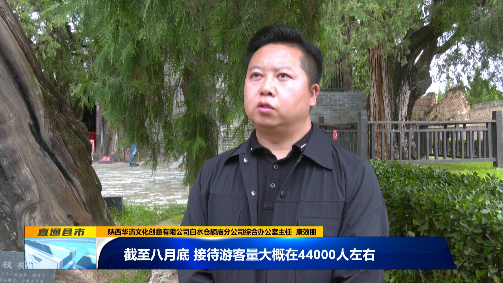 陜西華清文化創(chuàng)意有限公司白水倉頡廟分公司綜合辦公室主任 康效朋:“截至八月底,接待游客量大概在44000人左右,周末每天團隊能增加一點,大概在10~12個團隊左右,人數(shù)也相應增加。每天的散客大概有200多人。”