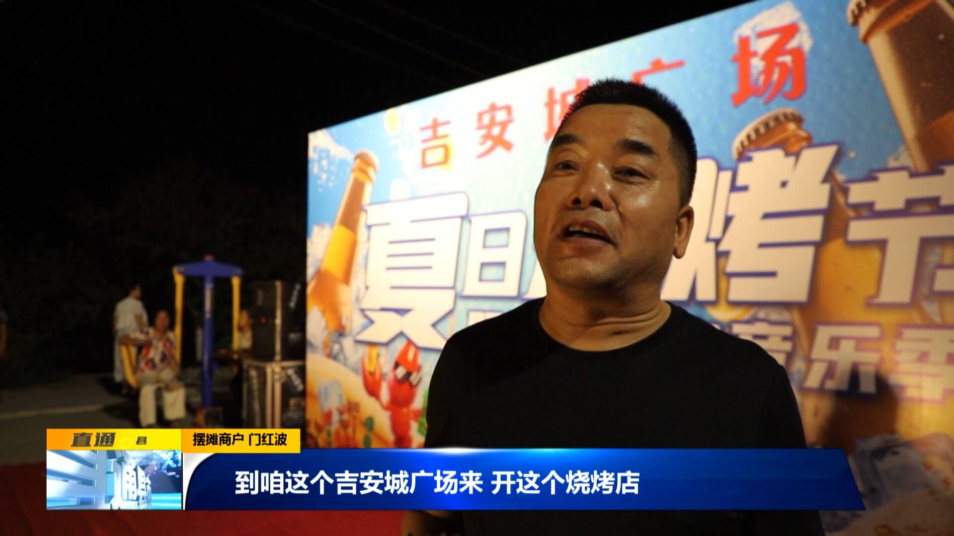 擺攤商戶 門紅波:“到咱這個吉安城廣場來,開這個燒烤店,吉安城這個廣場提供這個氛圍各方面都很好,一是給咱群眾帶來了方便,二是也給我帶來一定的收入,大概一天也就是一兩千元左右。”