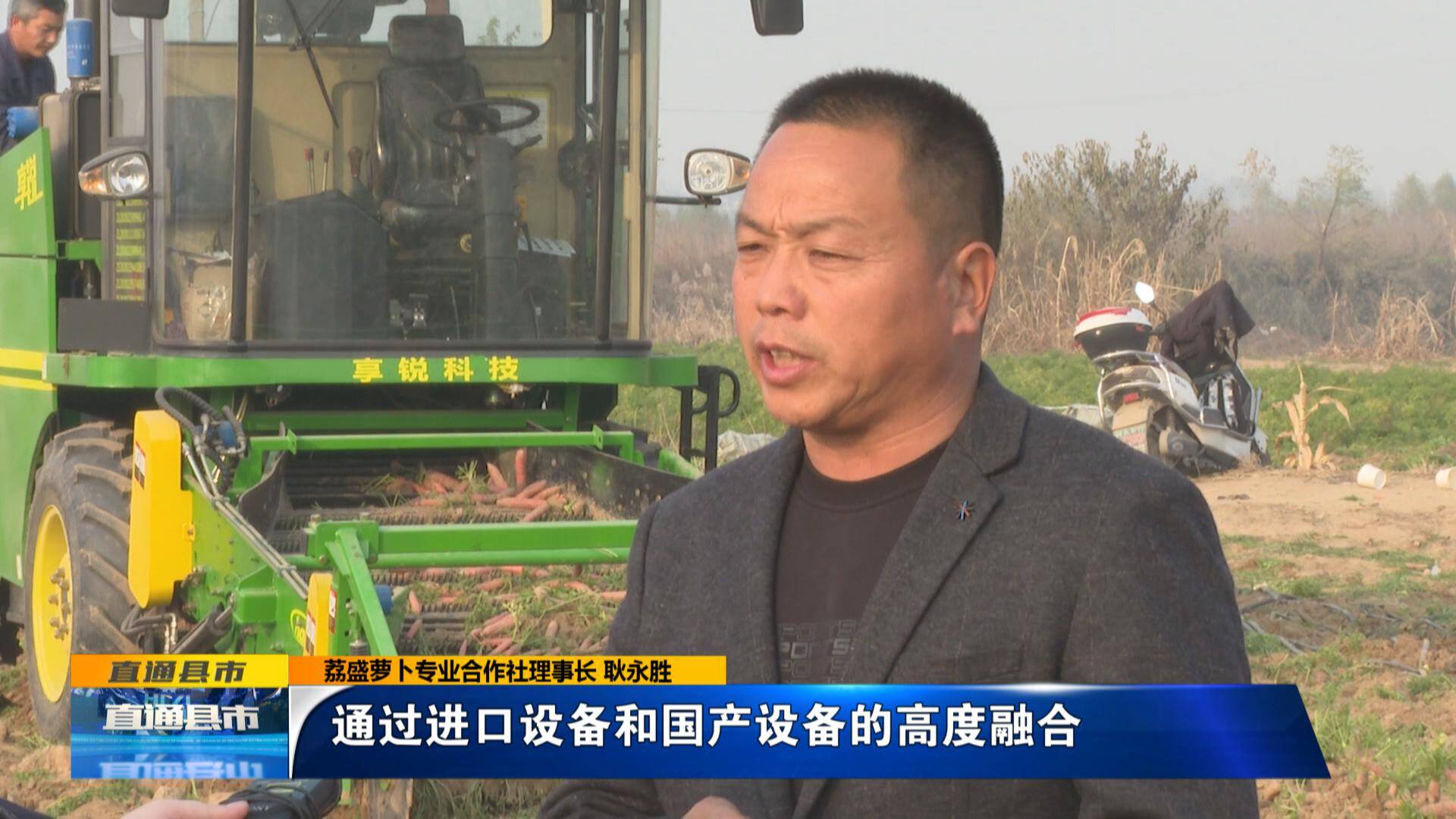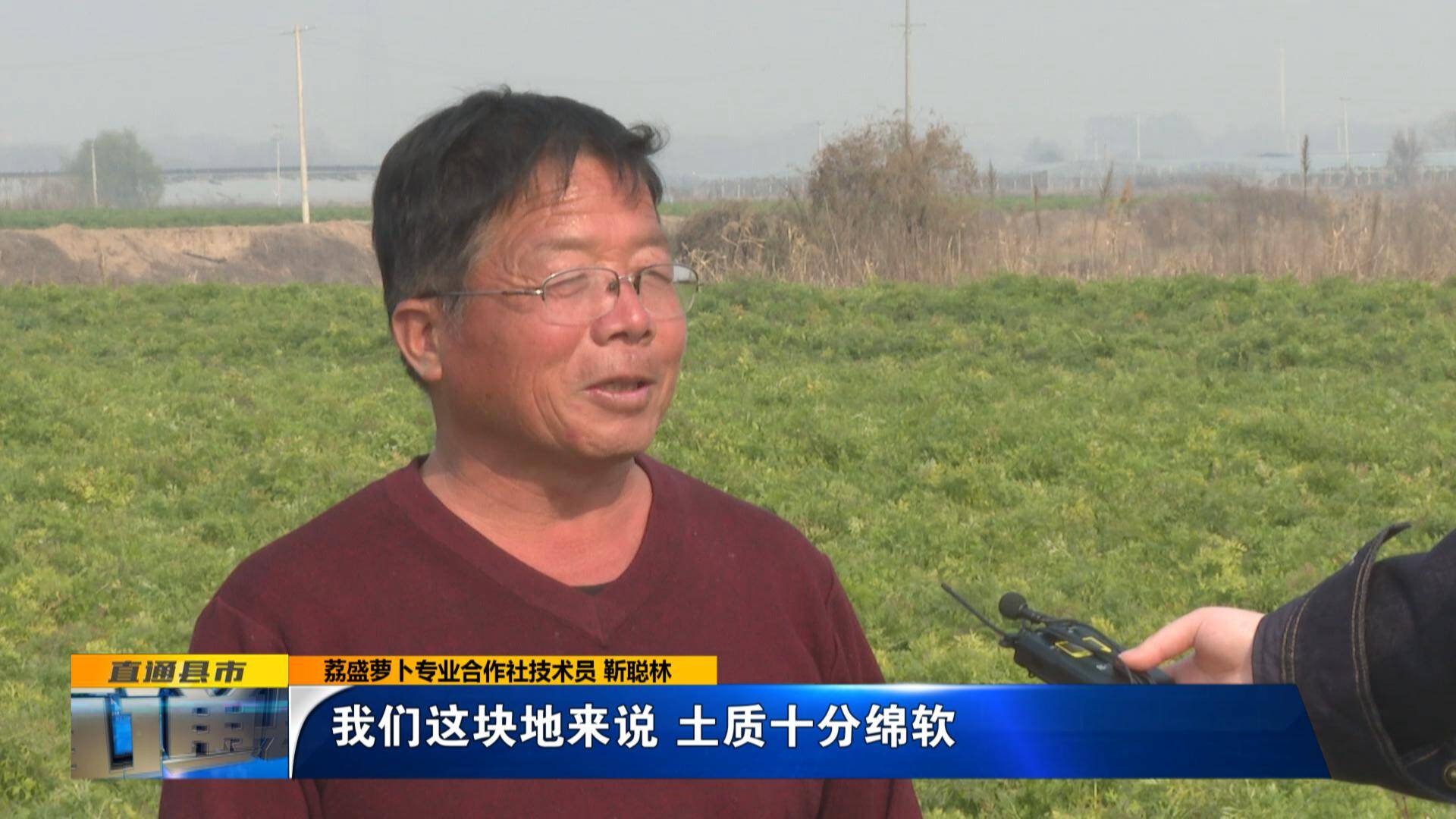 荔盛蘿卜專業合作社技術員 靳聰林:“我們這塊地來說,土質十分綿軟,對紅蘿卜來說它喜歡這個,光照特別好,溫差也大,種出的紅蘿卜脆甜品質高。”