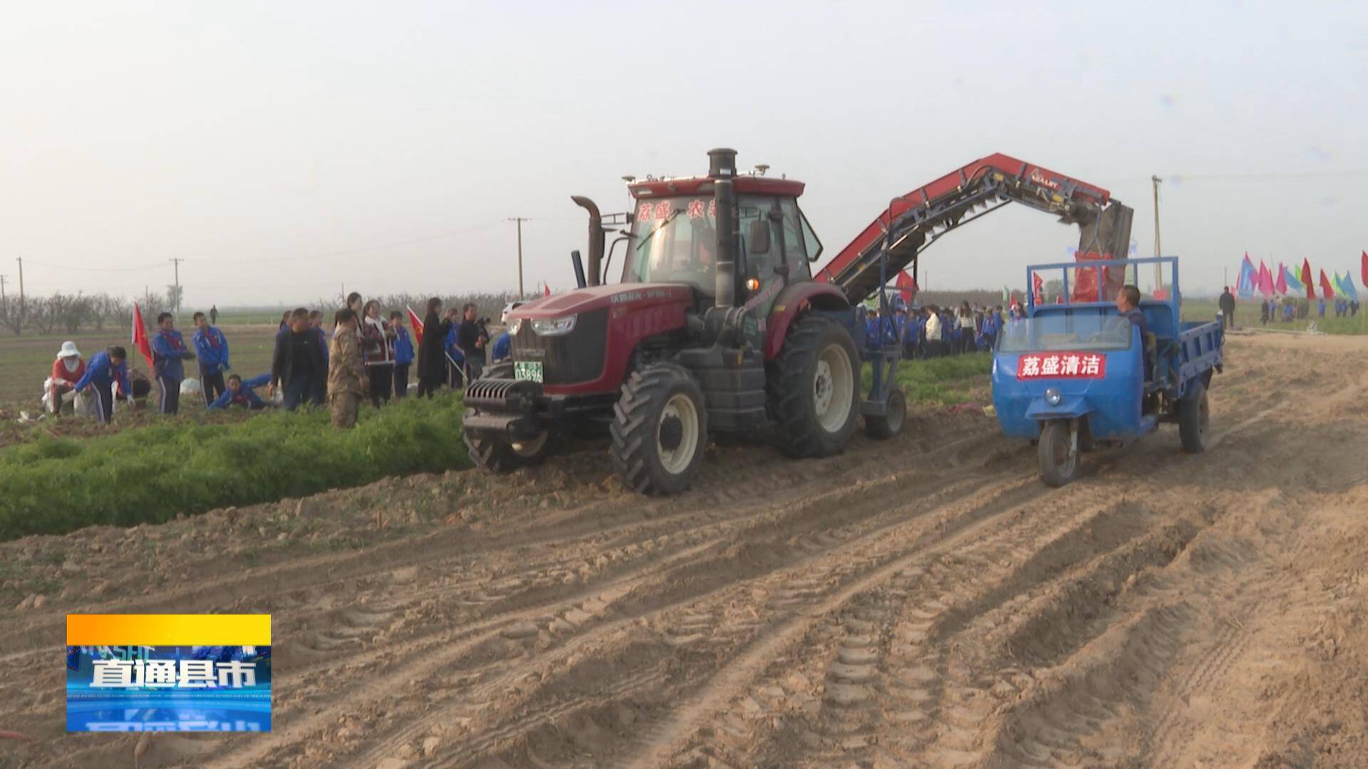 大荔縣融媒體中心記者 石天宇:“我現在所在的位置是在大荔沙苑的紅蘿卜種植基地里,這幾天正是紅蘿卜的成熟時期,那在我身后這片地里工人正在忙碌地采收著,那可以感受到現場是一片豐收的喜悅。”
