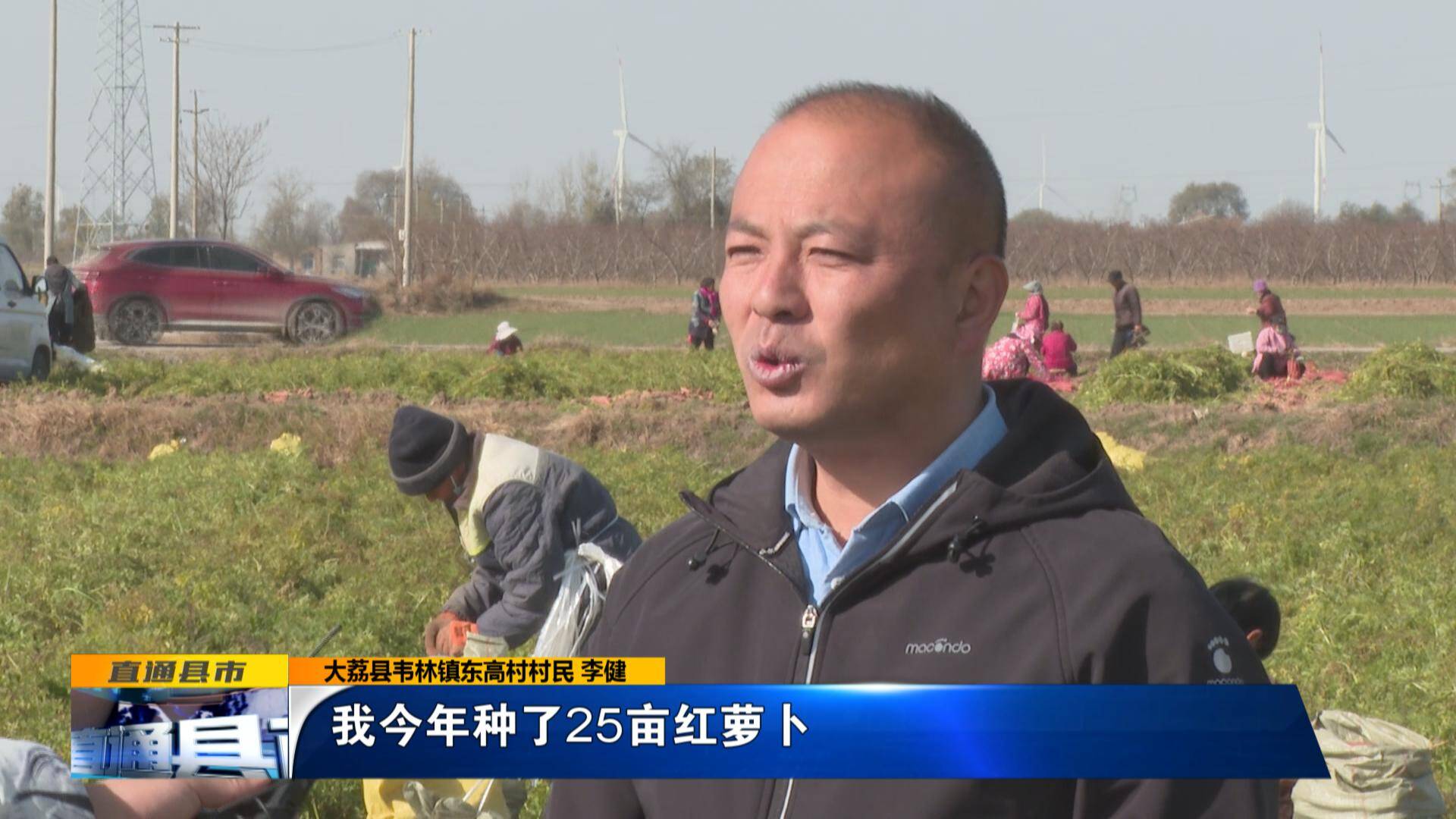 大荔縣韋林鎮東高村村民 李健:“我今年種了25畝紅蘿卜,最近客商還是比較多,大概下來能賣六萬多塊錢。”