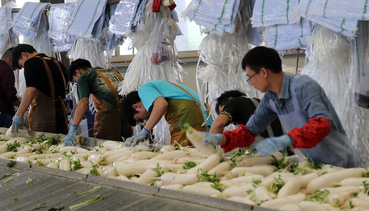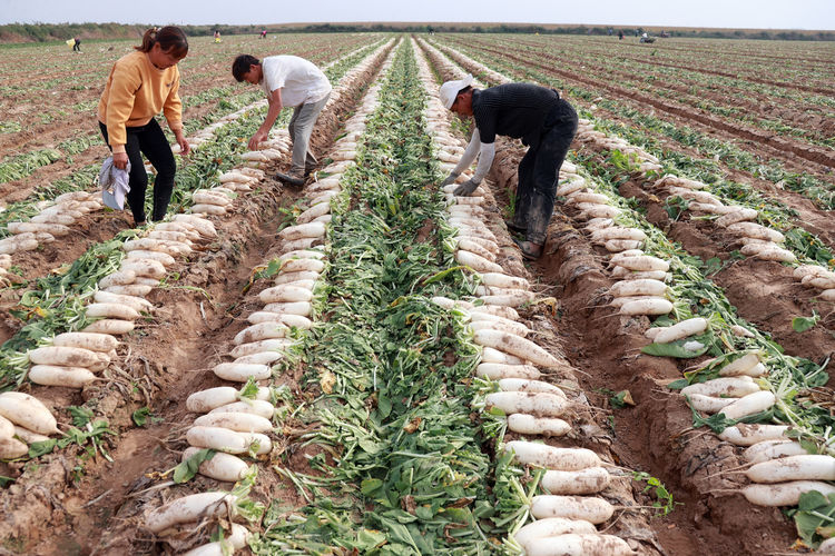 這種“象牙白”白蘿卜口感脆嫩,汁多味甜,營養豐富而享譽省內外,受到客商的青睞。在“大荔金農果蔬專業合作”社經營管理下,種植的1200畝“象牙白”白蘿卜,實現了種植、采收、深加工一體化,每天200余噸白蘿卜源源運往廣東、虎門、重慶、西安等地,豐富市場“菜籃子”,畝收產值在1.2萬元左右。這是陜西大荔縣打造的服務三農新模式的一個縮影。