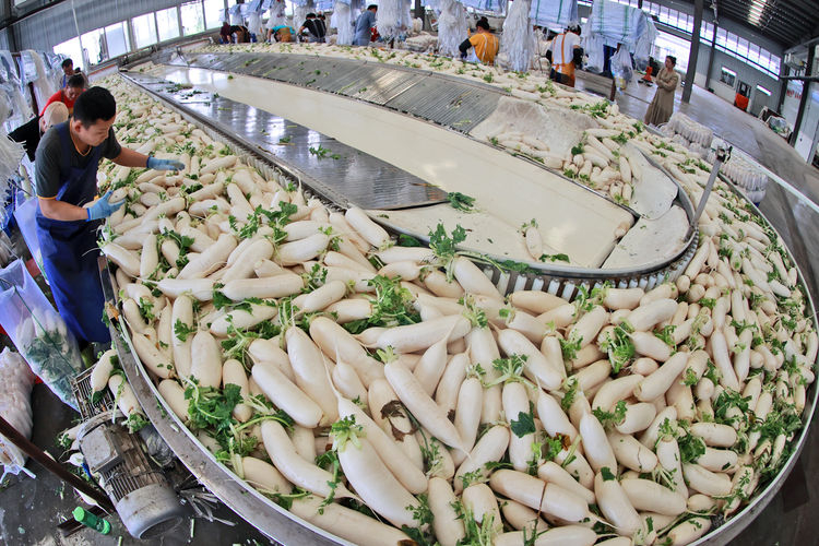 (通訊員:李世居)10月9日,在渭南市大荔縣農投沙苑產銷一體化園區,工人們忙著采摘、水洗、精心挑選“象牙白”白蘿卜。