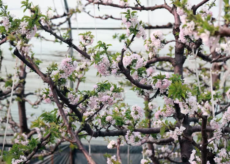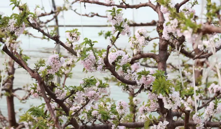 在櫻桃大棚中,放眼望去,櫻桃花婀娜多姿,花香沁人心脾,潔白的櫻桃花爭奇斗艷,一樹樹櫻桃花盡情綻放,芬芳滿園,呈現出一片生機勃勃的景象。雷北村黨支部書記王民理告訴我們,他們村種植大棚櫻桃達400余畝,畝產可達1500公斤左右,產值約5萬元左右,為群眾帶來了增產增收的新盼頭。