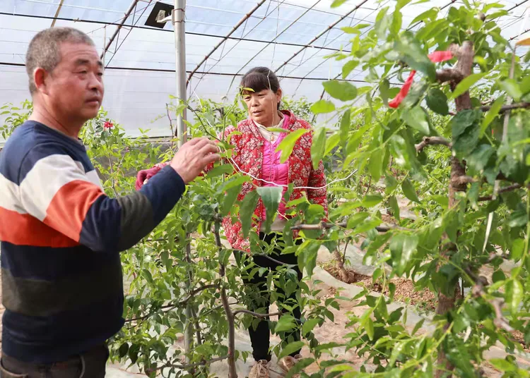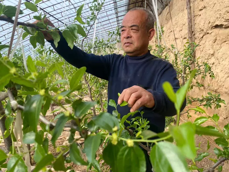 在素有大荔冬棗第一熟種植戶之稱的李建斌的“坑棚”里,夫婦二人正忙著給冬棗“打尖”。辛勤勞作的主人表示,當下冬棗已步入開花的關鍵時期,絲毫不敢疏忽。“您看,有些開花不均勻的,還得噴施促進開花的藥劑。大年初一,吃過餃子我們就趕到冬棗大棚,卷起棉被升溫,在棗棚干活雖忙碌但很開心!”李建斌栽植的“坑棚”采用了棉被和反光膜等增溫措施,冬棗發芽早、成熟早,每年五月就能上市,最早每斤售價達 200 多元。