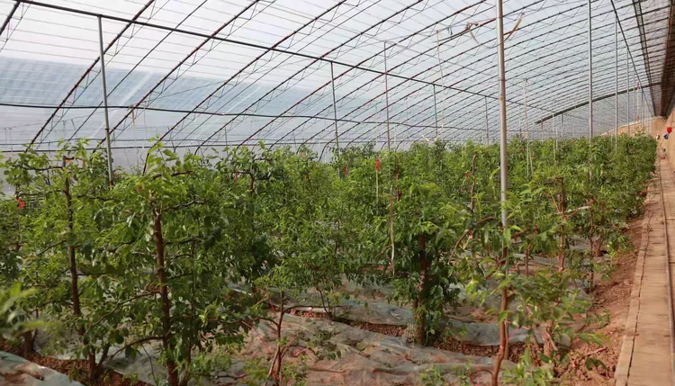 最早栽植冬棗,至今已有 15 年的井莊村李雙跨的冬棗大棚,一片蔥蘢繁茂,新換頭的二代冬棗長勢喜人,主人滿心愉悅,稱冬棗預計收入約 20 萬元左右。這些都是大荔縣范家鎮井莊冬棗億元村的真實景象。