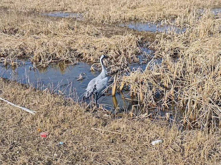 2 月 26 日,經由大荔縣林業局濕地保護中心工作人員和醫生為期兩天的救治,被救助的國家二級保護野生動物灰鶴在黃河濕地被放飛。