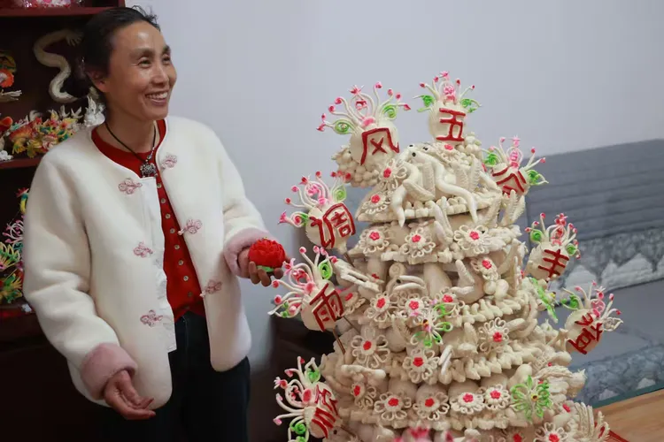過去十多年,苗麗莉一直向村里制作面花的傳承人虛心學藝。如今,她憑借精湛技藝,在面花創業之路上大放異彩。她的面花作品,做工細膩精巧,花樣層出不窮,造型別具一格,兼具古樸大氣與深刻寓意。這些面花不僅是農耕文明源遠流長的見證,更承載著尊老愛幼、孝老敬親的傳統美德,以及村民們與人為善、勤儉感恩的質樸情懷,她家的情況,正是阿壽村花饃制作的生動寫照。