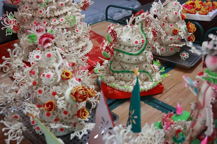 如今在羌白鎮阿壽村,面花這一傳統文化展現出強大的產業帶動效應,真正實現了“一業帶動百業興”。像苗麗莉這樣的面花制作已形成規模,全村有 30 多家群眾參與到面花制作中。生產從最初的家庭模式,逐漸發展為商品化產銷模式。這不僅傳承了優秀文化,增加了群眾收入,在推動鄉村振興方面也成效顯著。面花制作不僅豐富了當地群眾的文化生活,還大力促進了二三產業,助推鄉村振興和新質生產力發展。?