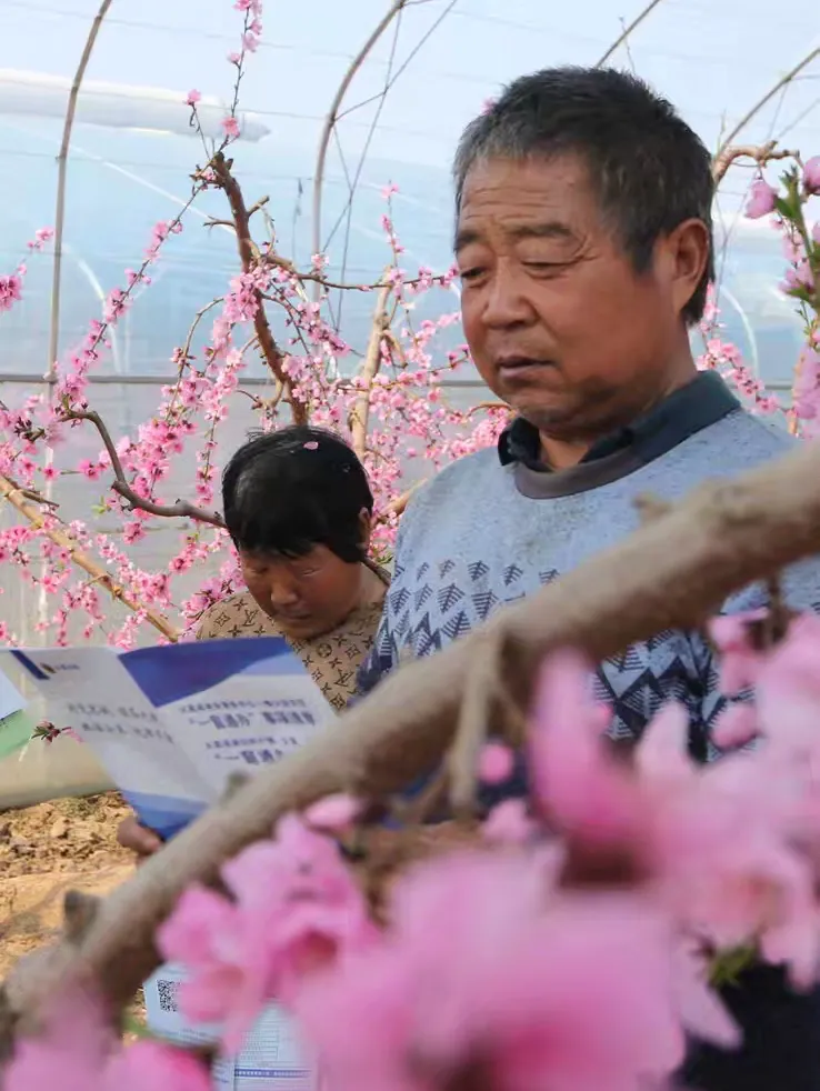 “我的大棚桃花眼下正處于盛花期,授粉期也就三四天左右,這幾天得趕緊完成授粉,今年的產(chǎn)量才有保障。”在大荔縣范家鎮(zhèn)南干村一組馬紅濤那4畝的溫室大棚里,同樣是春意盎然。“珍珠棗油桃”的桃花絢麗地盛開著,馬紅濤正忙著用“土辦法”——雞毛撣子為油桃授粉。范家鎮(zhèn)南干村溫室大棚所栽種的新品種油桃和油蟠桃,已然成為了該村群眾增收致富的“香餑餑”,桃產(chǎn)業(yè)切切實實地為老百姓帶來了實惠。全村大棚桃的種植面積達到400多畝,這些大棚桃每年比露天油桃能提前一個多月上市,巧妙地填補了市場“空檔”,從而賣上了好價錢,每畝收入可達5萬多元。當(dāng)下,整個范家鎮(zhèn)的設(shè)施桃種植面積已達上千畝。當(dāng)?shù)赝ㄟ^“大棚升級 + 引進新品種 + 科技助農(nóng)”的發(fā)展模式,為群眾創(chuàng)造了頗為可觀的收入,桃產(chǎn)業(yè)也成為了鄉(xiāng)村振興、農(nóng)民致富的支柱產(chǎn)業(yè)。