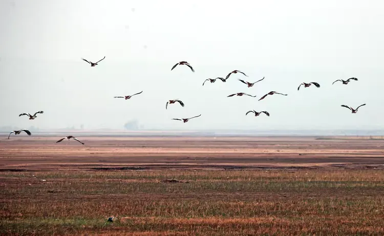 3月30日,伴隨著季節的悄然轉換,在陜西黃河濕地省級自然保護區大荔段,約20多只大鴇——這最后一批在此越冬的候鳥,開啟了向北遷徙的征程。據濕地保護中心工作人員黨大朋介紹,去年,在黃河濕地越冬的大鴇數量不少于300只。