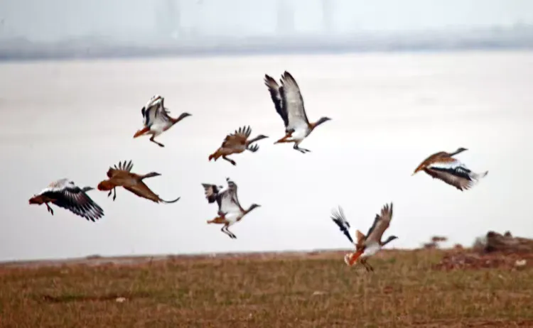 大鴇,作為一種大型地遷徙鳥類,在特定的時段里,黃河濕地為它們提供了極為適宜的棲息環境。而此刻,它們遵循著大自然的固有節律,即將結束在這片土地上的越冬棲息,毅然踏上返航遷徙的路途。