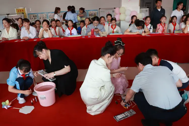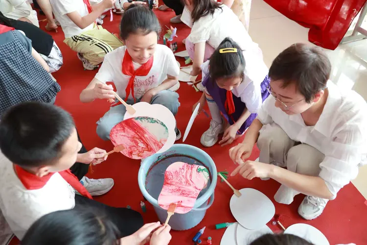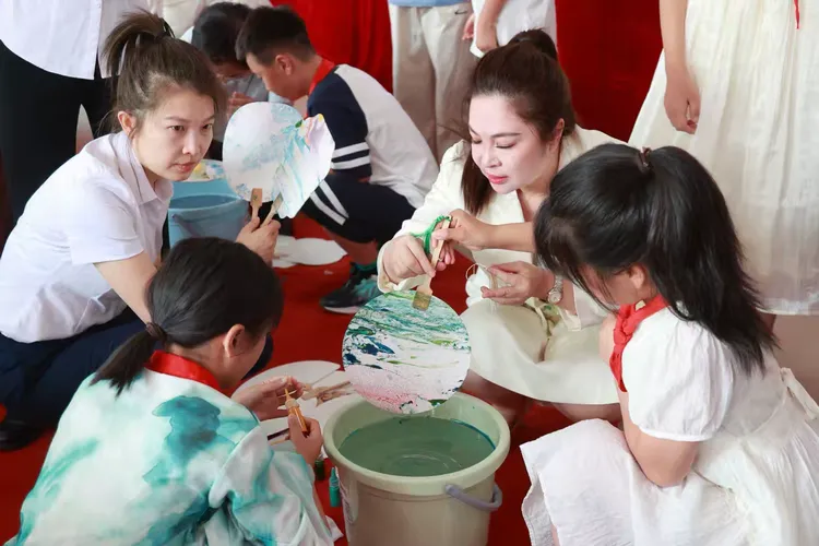 5月28日,大荔縣婦聯組織近百名“愛心媽媽”帶著滿滿的愛意與關懷走進洛濱小學,與80名孩子圍坐在一起,大手牽小手,共同體驗水拓團扇、制作綠豆糕、走親子T臺秀,開啟了一場充滿趣味與溫情的互動之旅過六一。