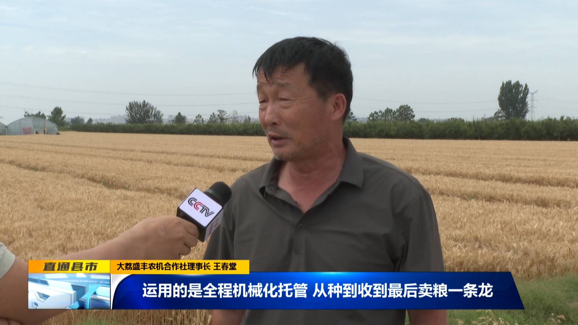 大荔盛豐農機合作社理事長 王春堂:“運用的是全程機械化托管,從種到收到最后賣糧一條龍,最后小麥收了以后,再把農戶小麥收購,最后把錢付給農民。”