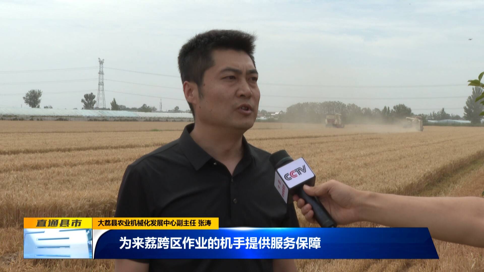 大荔縣農業機械化發展中心副主任 張濤:“專門設立了三個跨區作業服務點,為來荔跨區作業的機手提供服務保障。我們同時還成立了兩個安全巡查組,每天不間斷地在田間地頭道路上進行安全巡查跟技術指導,保證每臺機械都以良好的狀態投入作業。”