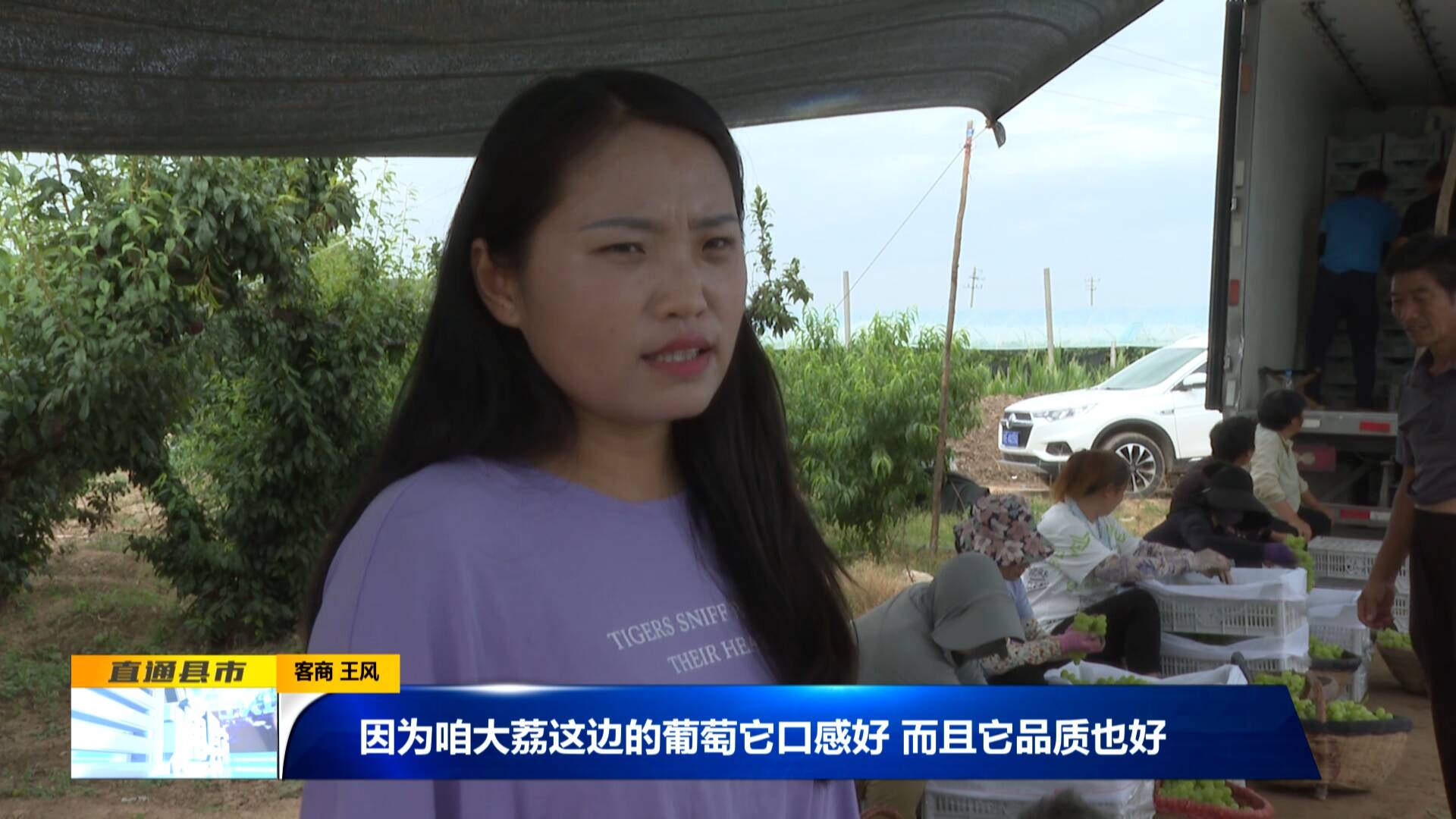 客商 王風:“我來大荔這邊收(購)葡萄已經六七年了。因為咱大荔這邊的葡萄它口感好,而且它品質也好,顆粒也大,然后到市場也比較受歡迎,銷路也好一點,賣得也快一點。”