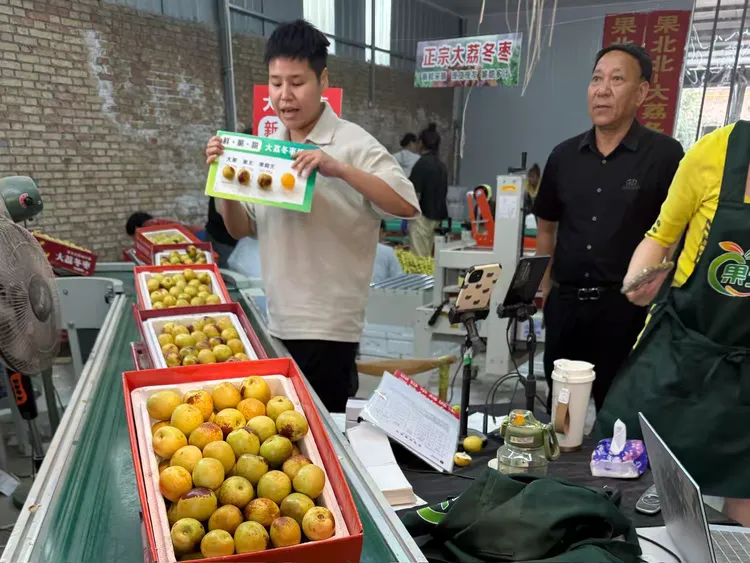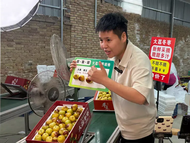 “家人們看過來,咱們的冬棗都是清晨采摘,經過八道工序分選,壞果包賠......”7月10日,在陜西大荔縣安仁鎮通潤村電商直播間里,90后新農人石佳正對著鏡頭熱情推介大荔冬棗。作為“果北北”品牌創始人,這位來自山東濟南的電商從業者,用四年時間在大荔冬棗產業中闖出一片天地,日發單量突破2萬單,通過線上線下,每天銷售冬棗7500公斤,復購率達30%,年銷售額增長超50%。
