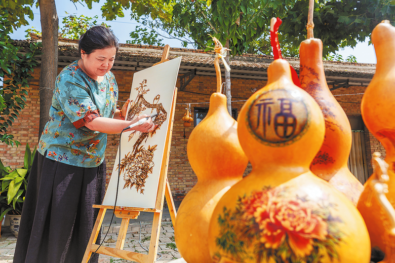 8月1日,趙愛玲正在繪制烙畫作品《春韻》 通訊員 武宏 攝