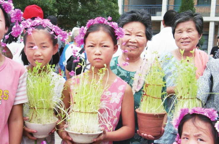 “比巧芽”則是從農歷六月下旬開始,村里各家各戶的婦女浸泡大麥、小麥等七種谷物,每日換水培育綠苗,名為“巧芽”,在長成的巧芽周圍纏幾道紅絲線,到節日那天置放在織女像前來比巧,巧芽高的就得到“巧姑娘”的贊譽。
