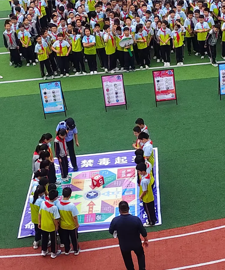 活動通過“禁毒飛行棋”游戲,將禁毒知識融入問答和情景模擬,讓學生在游戲中輕松掌握拒毒技巧。“視力辨毒品”環節則借助仿真模型,幫助學生直觀認識毒品特征與危害。現場氣氛熱烈,學生踴躍參與,爭當“禁毒小衛士”。