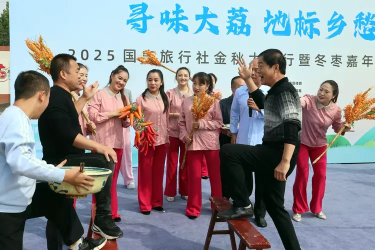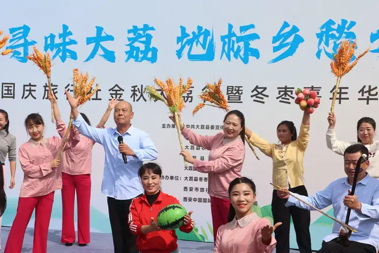 9月29日,在大荔縣旅游景點“冬棗小鎮”舉辦的金秋大荔行嘉年華文化旅游活動中,來自西安市旅行社協會的30多家旅行社代表及西安國旅組織的200余名游客與大荔劇團“同州梆子”《三河人家》互動嗨翻天,品嘗了一臺豐盛的文化大餐