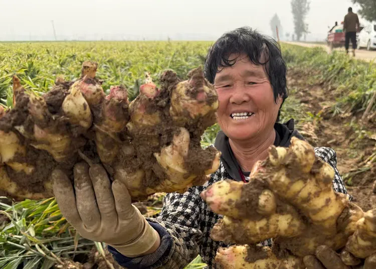 10月31日,大荔縣韋林鎮東高村試種的30畝大姜迎來豐收,生姜田里,鮮姜塊大飽滿、色澤鮮黃,村民忙著采收分揀,臉上滿是喜悅。此次大姜畝產量5000多公斤,畝產值達三萬余元,為當地農業致富開辟新路徑。