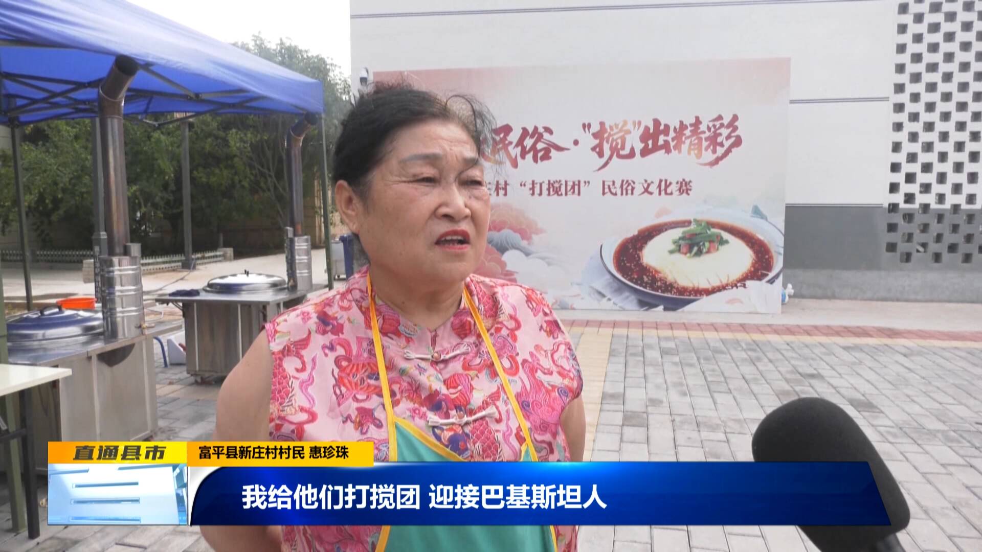 富平縣新莊村村民 惠珍珠:“我給他們打攪團,迎接巴基斯坦人。(期望)巴基斯坦跟中國關系紅紅火火、越來越好!”