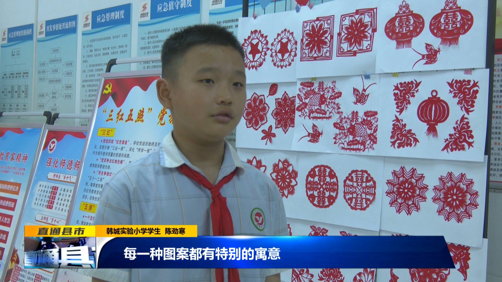 韓城實(shí)驗(yàn)小學(xué)學(xué)生 陳勁寒:“我知道了剪紙是中國的傳統(tǒng)文化,每一種圖案都有特別的寓意,而且在剪紙的時(shí)候,我學(xué)會(huì)了耐心和細(xì)心。”