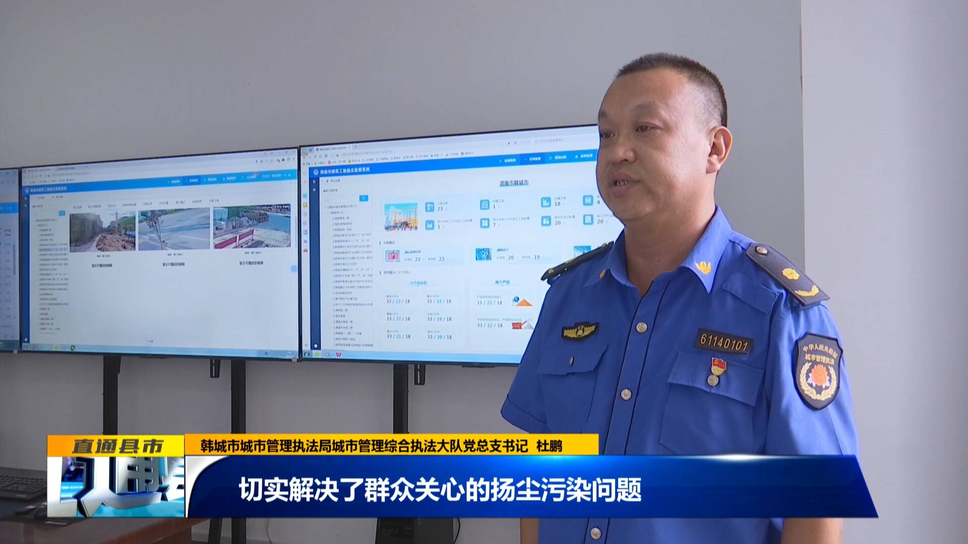 韓城市城市管理執(zhí)法局城市管理綜合執(zhí)法大隊黨總支書記 杜鵬:“平臺運行以來,我局已督查督辦處理問題500余起,有效提高了揚塵治理工作的效率和質(zhì)量,切實解決了群眾關(guān)心的揚塵污染問題,推動環(huán)境空氣質(zhì)量持續(xù)改善。”